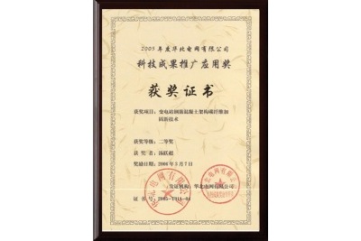 2005年公司自主研發(fā)的加固新技術(shù)獲得了華北電網(wǎng)有限公司科技成果推廣應(yīng)用獎(jiǎng)