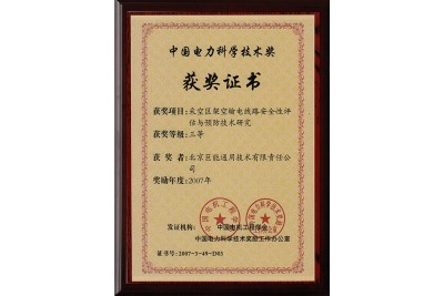 2007年公司《采空區(qū)架空輸電線路安全性評(píng)估與預(yù)防技術(shù)研究》獲得了中國(guó)電機(jī)工程學(xué)會(huì)頒發(fā)的《中國(guó)電力科學(xué)技術(shù)獎(jiǎng)》三等獎(jiǎng)